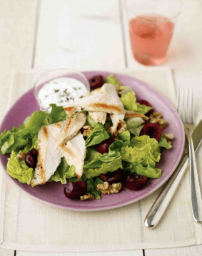 Seared Chicken Salad with Cherries, Walnuts and Goats Cheese