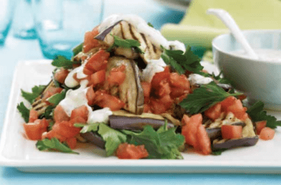 Eggplant, tomato & parsley salad with mint yoghurt dressing