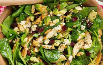 Cranberry Avocado Spinach Salad with Chicken and Orange Poppy Seed Dressing